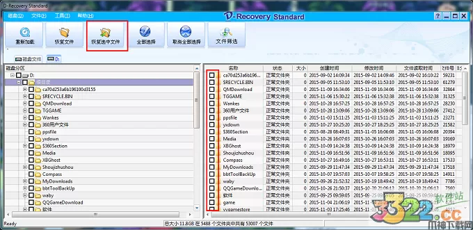 3、勾选出需要恢复的文件,如下图所示,然后点击“恢复选择文件”