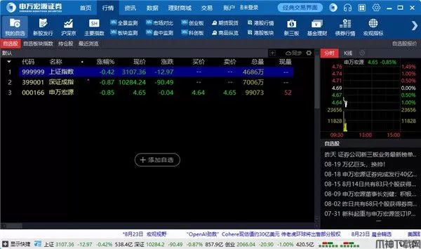 申万宏源证券市场主要大盘指数报价及行情走势。