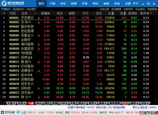 可显示自选股列表,通过功能键"添加、删除”进行自选股设置;可将自选股上下移动,可根据行情字段对自选股进行排序。