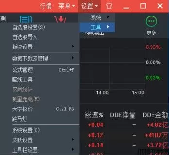 5、【工具栏】:位于菜单栏下,主窗口之上的位置,包含了学返回键、上下翻、修正键、全景视图、涨幅排行、新股日历、热门板块、资金流向、数据中心(机构评级、研究报告、业绩预测、龙虎榜、高管持股、宏观数据)、资讯中心、闪电买卖等功能,方便用户使用。