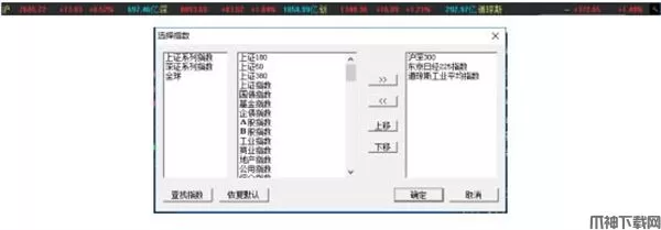 7、【指数条】:默认显示上证指数、深证成指、创业板指数以及自定义行情指数包括涨跌和成交金额。所显示的指数信息科进行自定义设置。