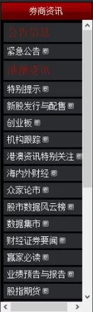 10、【券商资讯】:资讯包含港澳资讯、特别提醒、新股发行与配售、创业板、机构跟踪、