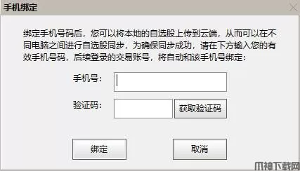 3、需要注意的是,绑定手机号码后,您可以将本地的自选股上传到云端,从而可以在不同电脑之间进行自选股同步,但为确保同步成功,请在下方输入您的有效手机号码,后续登录的交易账号,将自动和该手机号绑定。