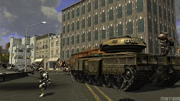 下面要炸毁城市中的三个蚁巢,敌人也派出大量蚂蚁与甲虫对付我们,同时空中也有战斗机甲,场面一时混乱不堪,被甲虫从后面抓住的时候要迅速按E键挣脱