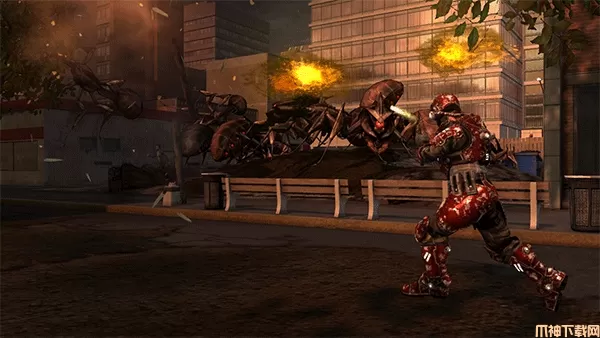 收集完数据飞机自爆,下面总部又要我们去摧毁城市中的三处蚂蚁巢穴,根据地图提示来到第一处蚂蚁巢穴,用火箭筒消灭掉附近的大量兵蚁后按E键安放炸弹,安好炸弹后要迅速跑开,不然连自己一起炸飞