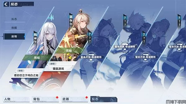 在推进主线的过程中,我们将会解锁爱歌、白伶等多个拟态角色,并获得她们的专属武器。