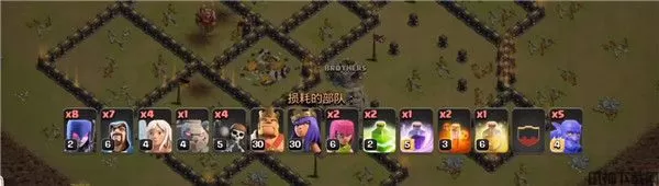 另外,这套暴力狗球流是带了天女的,如果弓箭女皇级别太低、正在休息或者正在升级的话,可以将弓箭女皇、天使和炸弹人改成气球和少许的亡灵。