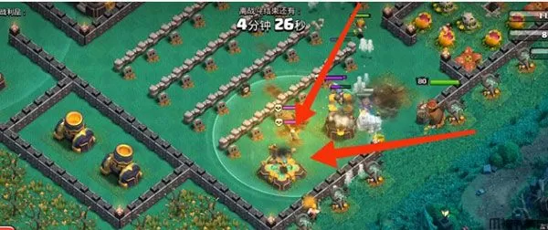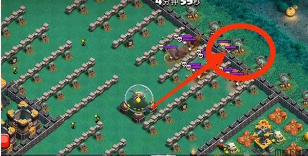 弹跳哥布林强就强在根本不搭理你的所有防御建筑,直奔资源,并且以收掉阵型中心的暗黑重油瓶和大本营为目标,从不拖泥带水。