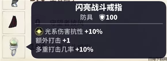 选择掉落的闪亮斗战戒指,?属性: 额外打击+1,多重打击几率+10% 。