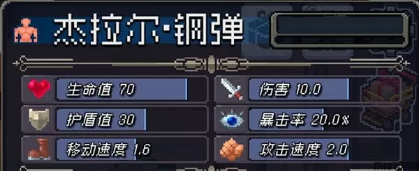 从杰拉尔钢弹的面板上,我们就可以看出来这是一位高生命、高护盾、低移速的英雄。因为杰拉尔钢弹的移动速度只有1.6,是六位英雄中最低的,所以玩家刚上手可能会很不适应,觉得操作很慢。