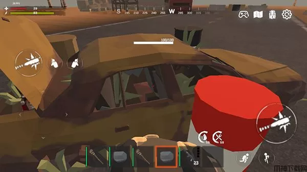 二、汽车在游戏内的用出不大,不建议驾驶,因为汽车的时速最高也就二十多千米每小时而且耗油巨大,汽油的产出可以多开路边的红色油桶获得,但是人奔跑大约有三十多千米每小时体力等三四秒就回好了。