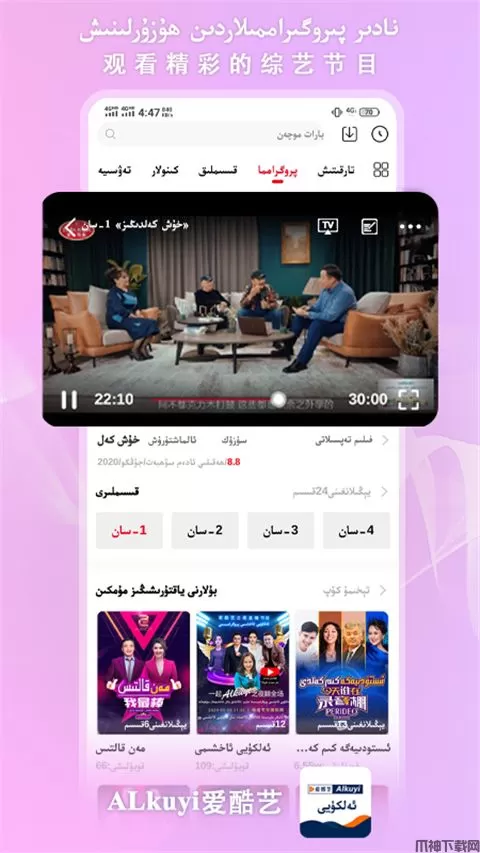 Alkuyi爱酷艺官方版是正能量维吾尔语视频客户端。爱酷艺平台严格遵守遵守各项法律法规,坚决抵制,杜绝不良信息,始终坚持正确舆论导向,积极弘扬社会主义核心价值观,是一款专业,正规,安全,可靠的维吾尔语视频客户端。爱酷艺(维吾尔语视频客户端)以新疆爱酷艺文化传媒有限公司开发的爱酷艺网为基础,跟爱酷艺网同步发布内容,是新疆少数民族用户传播正能量、发布爱酷艺原创视频为目的开发的, Alkuyi影视平台里的所有影视剧是通过专业的译制团队进行翻译和制作,通过严格的审核制度进行三审三查,为用户提供优质的译制电影、电视剧及各类本地娱乐节目。