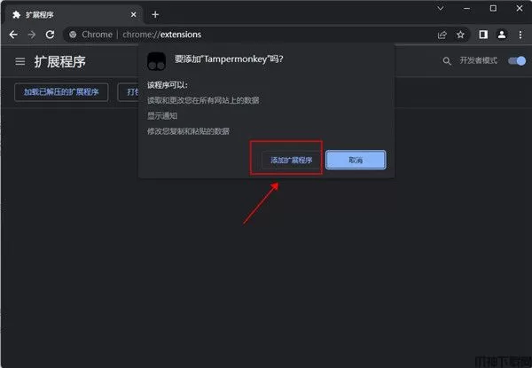 3、浏览器会提示是否添加插件,点“添加扩展程序”即可。