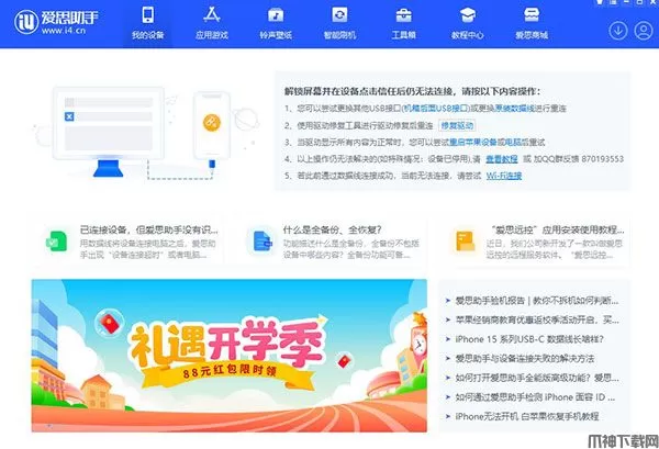 爱思助手电脑版是一款专为专为苹果设备用户打造的应用管理工具,界面清爽简洁,操作简单,可以帮助用户在电脑上管理和备份iOS设备上的应用、音乐、照片、通讯录等数据。