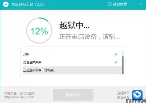 3、点击之后越狱会自动进行。设备在越狱过程中会自动重启,等待即可