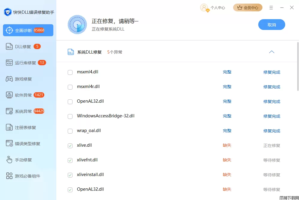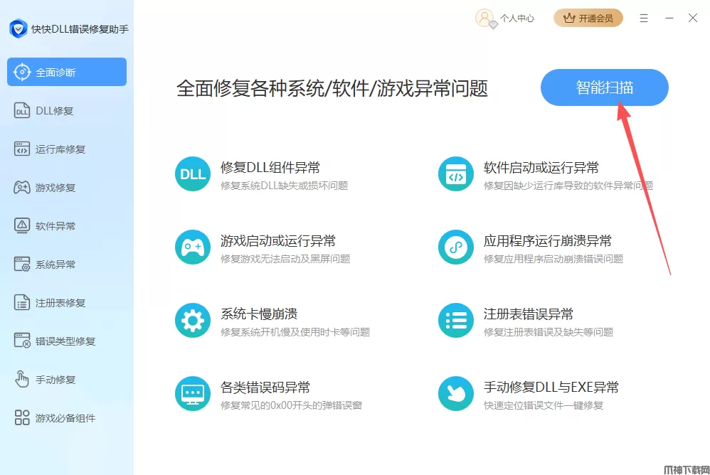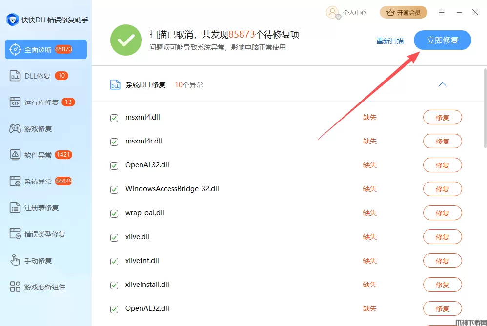 能快速修复游戏经常闪退问题,解决电脑DLL缺失问题。