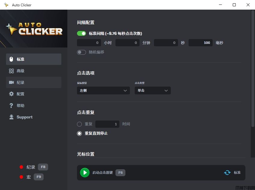 如果您需要一个快速设置的简单自动点击器,可以从标准模式开始: