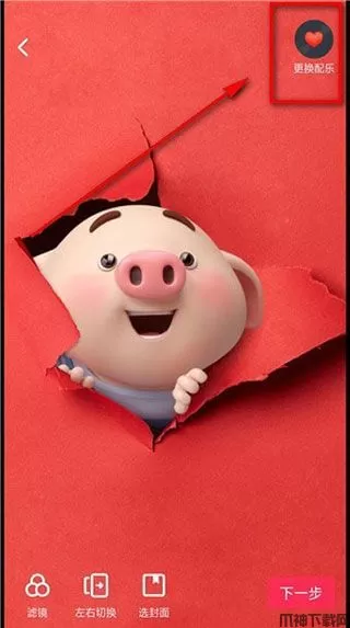 6、我们可以看到右上方就有一个更好配乐的图标,点击【更换配乐】;