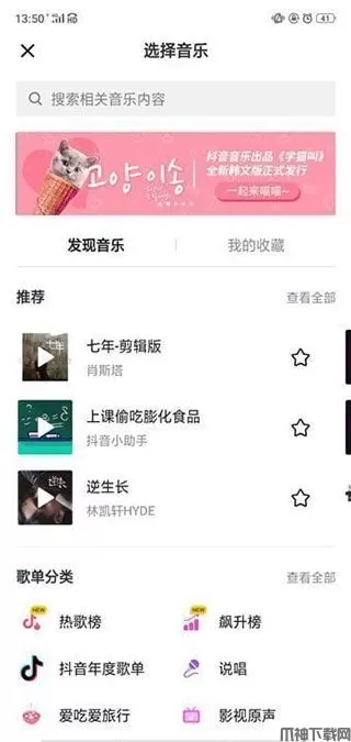 8、在这里我们就可以选择更多的音乐,甚至搜索自己想要的;