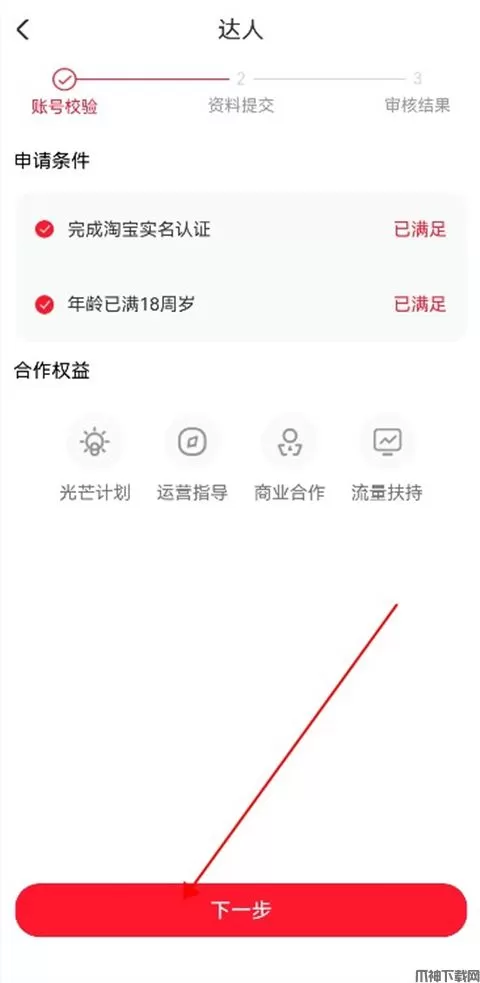 4、进入页面进行账号校验,然后点击下一步。