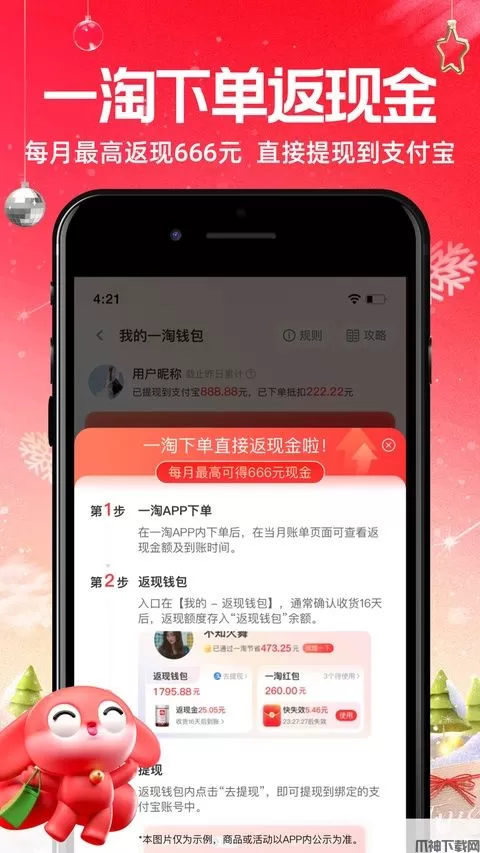 一淘app苹果版是一款阿里巴巴旗下特卖返利客户端,无需注册账号,淘宝账号一键登录,30秒淘宝购物车下单直接拿返利,最高返利80%,还可叠加专享大额优惠券,返利再减。