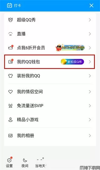 1、首先打开QQ,点击头像找到“我的钱包”。