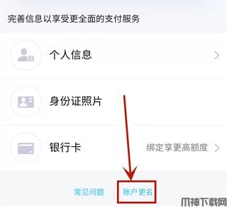 4、最后点击“账户更名”即可进入注销身份信息界面。