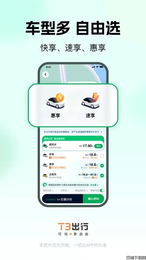 t3出行ios版是一款智慧出行生态打车服务软件。相对于滴滴打车、首约汽车等打车app它更加的优惠。另外,司机都是直接完成了线上的打车操作,完全的保护自己的隐私,平台全程的监控司机的行为用户可以更安心。其次,软件内所有的司机都是经过高标准的司机认证才能通过,保障用户安全问题。除此之外,打车选项丰富,涵盖出租车、专车、快享车、代驾及企业用车在内的一站式出行方式,让用户在打车上有更多的选择空间。并且,还支持IM即时通讯及受保护的虚拟电话,让用户可以轻松与司机建立沟通,不会出现放鸽子的,不来等现象。同时,软件为了加强用户安全问题,加入了一键报警功能,安全又放心。