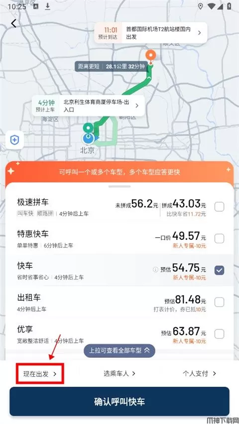 2、输入目的地之后,点击下方的现在出发;