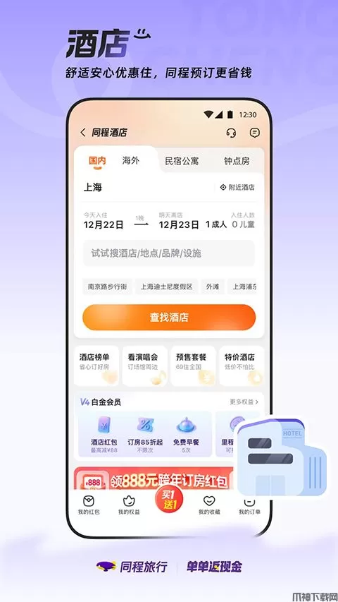 3、酒店:百万酒店覆盖国内海外,钟点房/品牌连锁/民宿应有尽有,亲子/差旅/旅行面面具到。