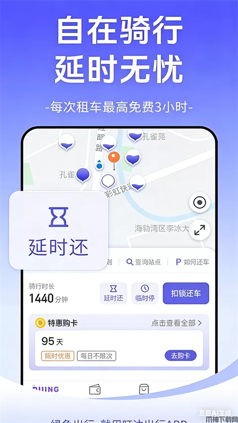 一键延时还车,超长骑行超低费用