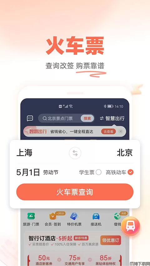 特点一:支持12306官方购买火车票,支持退票、改签,也支持铁友旅行代购火车票