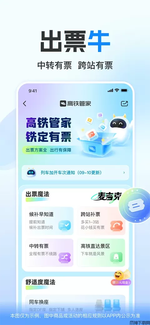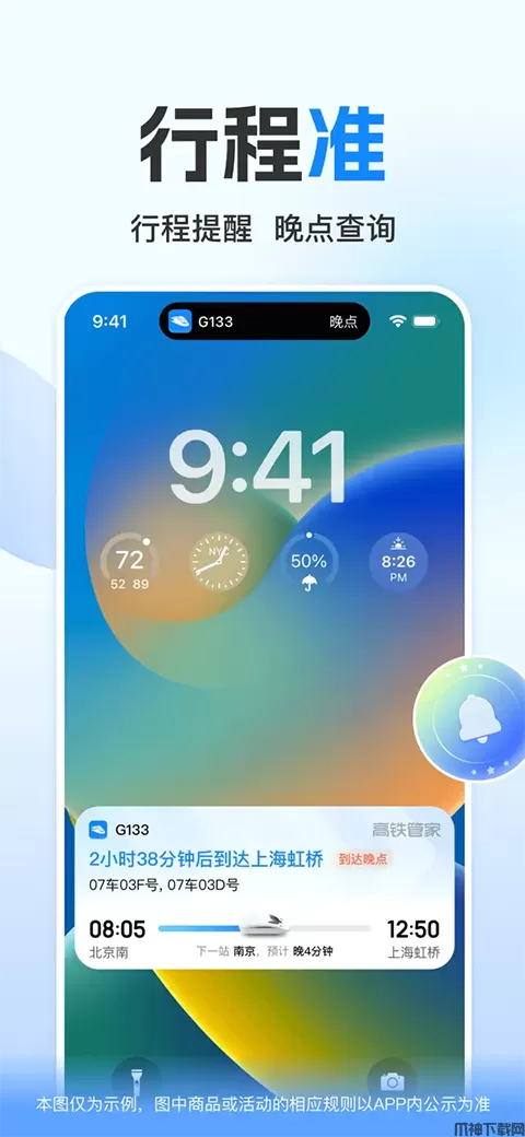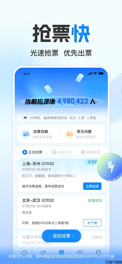 - 轻松管理「我的行程」,实时查询列车动态,停运、晚点早知道;