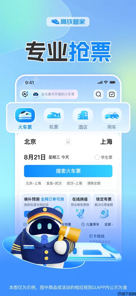 - 24小时预订,随时随地购买火车票、高铁票、学生票、儿童票;