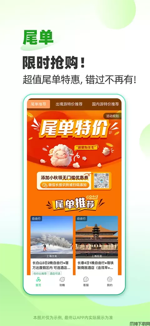 春秋旅游ios版是一款专为用户推出的旅游出行苹果应用。在这里,你可以选择各种各样不断的路线,不同的景点,看尽世界的繁华。软件中会根据各种不同节假日和主题推出各式各样的主题游,比如自游人、爸妈之旅、小众节日游、春之旅、纯玩团等等。春秋旅游与其他旅游软件不同的是它完全透明化的资金使用信息,让用户可以在吃住行游娱购都能提前知晓。软件界面清楚,推出优惠幅度大,是非常不错的一款旅行应用,爱旅行的你赶快来下载试试吧!