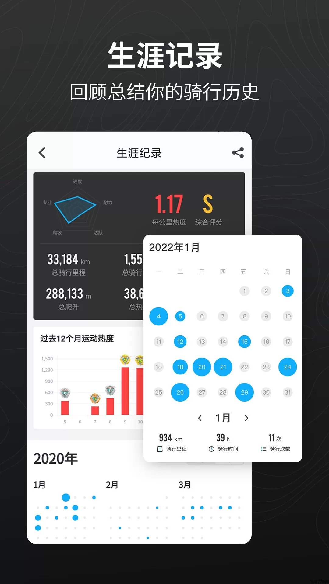 2、记录运动轨迹、功率数据、连接码表心率踏频、海拔曲线、坡度评级、找户外路线、导航、组队、线上赛、勋章成就等超多实用的功能!