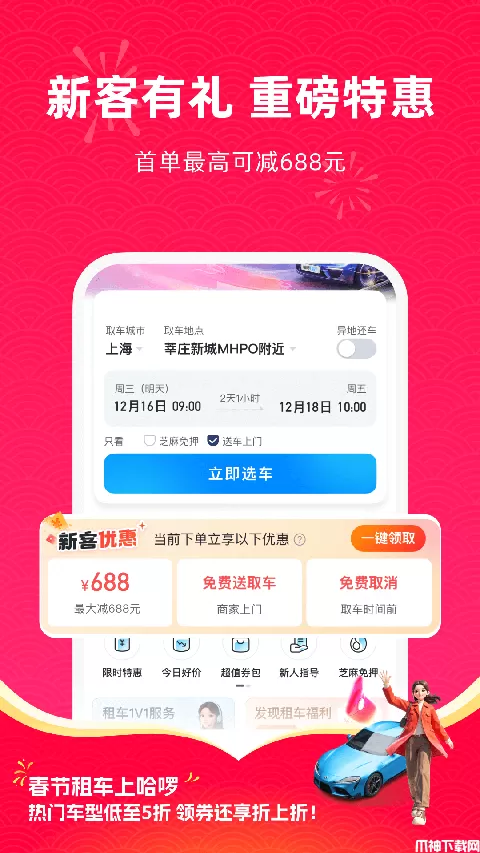 首单最高减688元,附赠送免费取消、免费送车上门权益