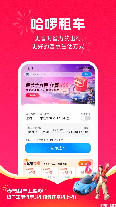 [春节钜惠]春节租车可领千元券包,还有大额5折券等你来抽!邀好友一起租车,还有机会赢取666元现金红包!