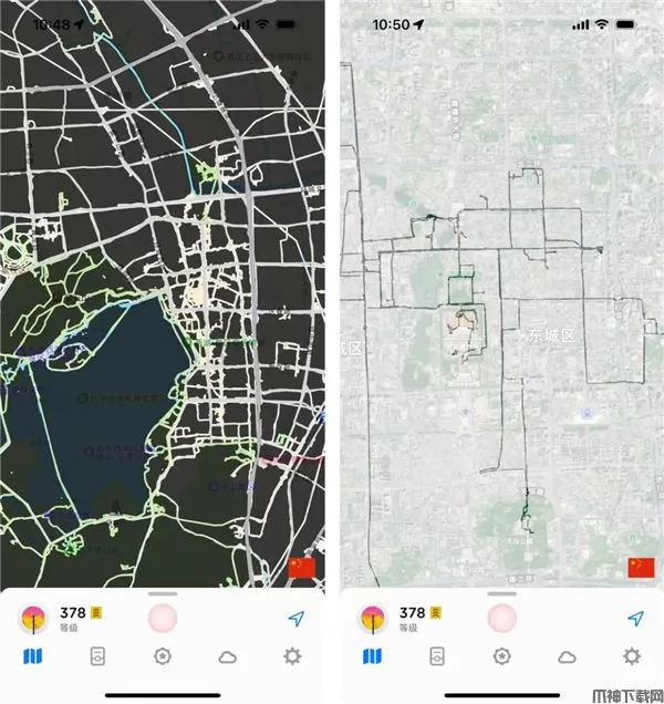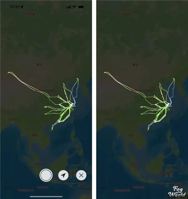 3、没有任何一个山寨 APP 可以像世界迷雾一样,让您在放大缩小地图时可以无缝平滑的显示路径粗细。