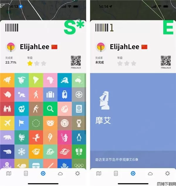 在新版应用中,每一枚徽章都可以点击打开,徽章对应的完成度、等级星星都可以详细查看。