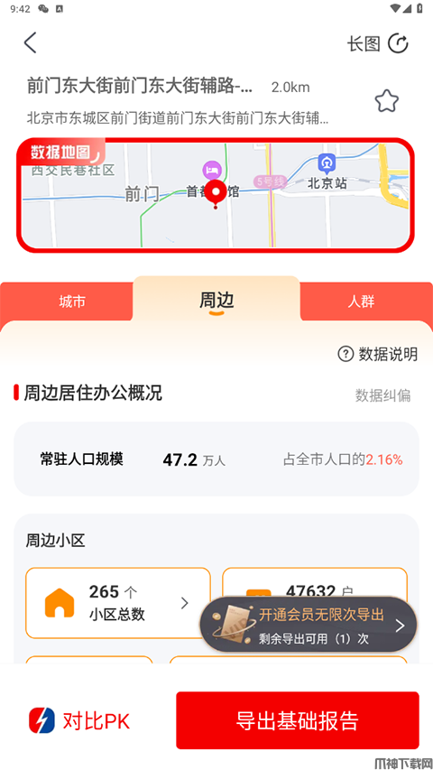 3、结果出来后,用户可以选择与其他调研位置进行对比,对比过程中可以隐藏相同数据项,筛选最为合适的调研位置,然后就可以导出pdf保存了。