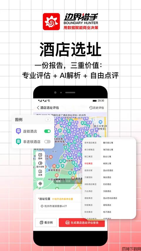边界猎手苹果版的核心理念是“帮助开发商、品牌商、设计机构高效获取与应用商业数据”,为的就是协助各大开发商、品牌商、商业招商、资讯服务机构等高效获取应用商业数据,帮助用户快速了解获取项目地周边市场情况,提高项目资金利用率,挖掘商业红利,降低开发时间成本。
