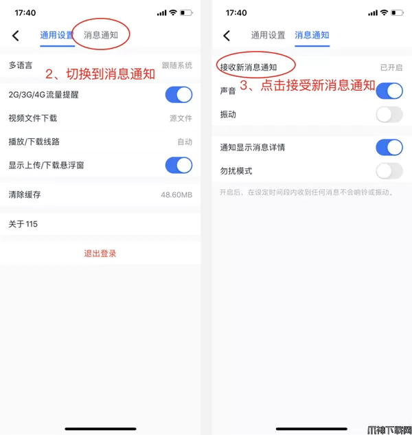 2、切换到消息通知,点击接受新消息通知。