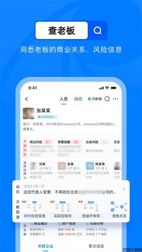 3、老板背景:老板商业角色、所有企业、合作伙伴、风险测评。
