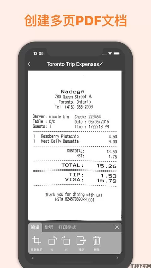 2、可检测页面边框、裁剪并更正角度:无需拍得很正,精灵扫描会消除不必要的背景