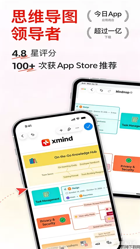 XMind思维导图ios版是针对ios设备所推出的一款思维导图工具,是各位用户整理思路、捕捉灵感、发散思维的神器;可以有效提升工作和生活效率,大小公司都在使用它。有了它,可以随时随地在手机上查看别人发来的xmind文件,也可以在手机上创建编辑xmind思维导图,再也不用受时间和地域限制了。XMind苹果手机版能帮助用户专注于内容的扩展延伸和梳理,融合艺术与创造力,让思维清晰可见。不管是在主题、结构、样式或字体上,它都可以给用户带来极速和强力的体验。致力为用户打造易用、美观、高效的可视化思维管理工具。可以在软件中创建workflow,心无旁骛的投入工作流程;以灵感为中心,在无限的脑图幕布上延伸想法;随手记录点滴灵感、待办清单、会议记录或是项目规划,尽情享受逻辑思维。