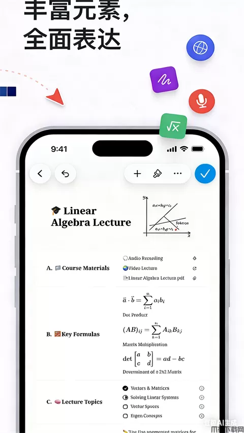插入方程:支持使用LaTeX命令快速添加数学和化学方程,高效学习不在话下。