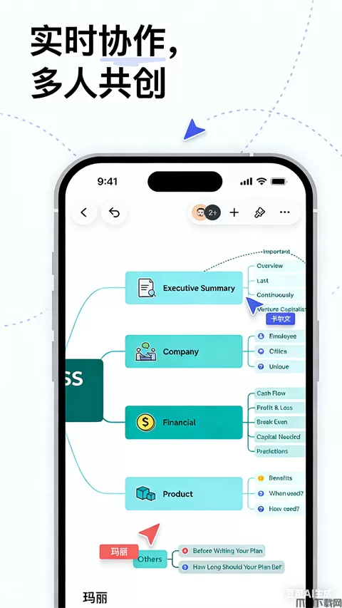 1、会议速记:会议时将内容和想法记录成思维导图,整理成清晰的图表,给展示增色