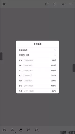 3、再返回首页中,点击上方“绘画”,再选择图画尺寸就能开始进行绘画了。