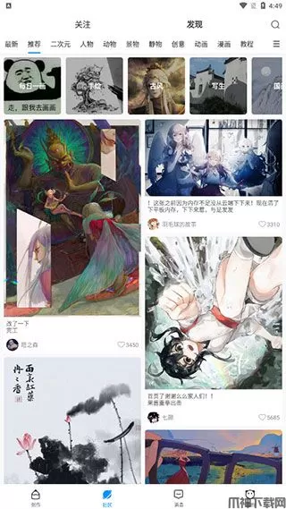 4、点击下方社区模块,再点击其中的“发现”。在里面可以查看其他作者创作的作品。